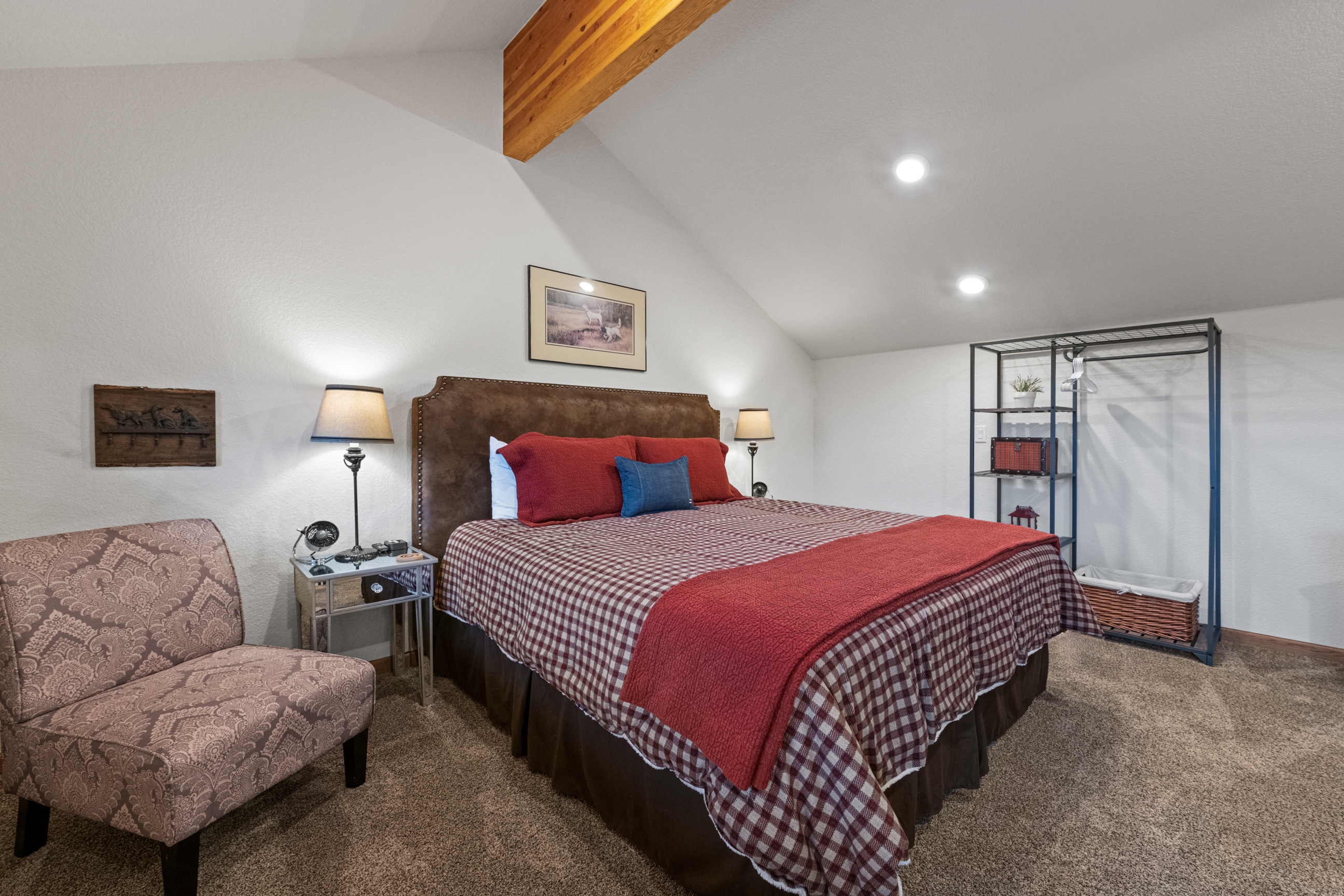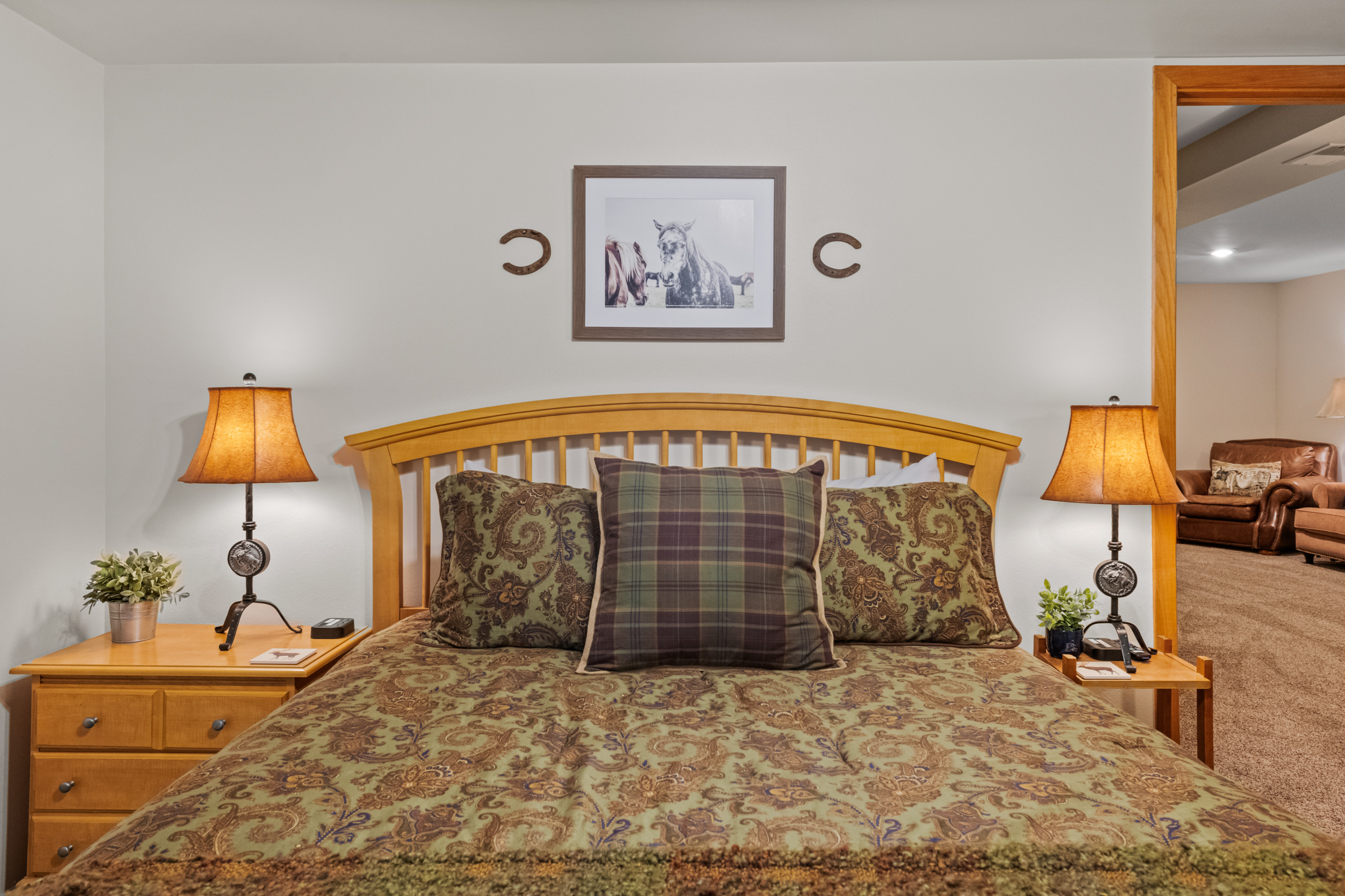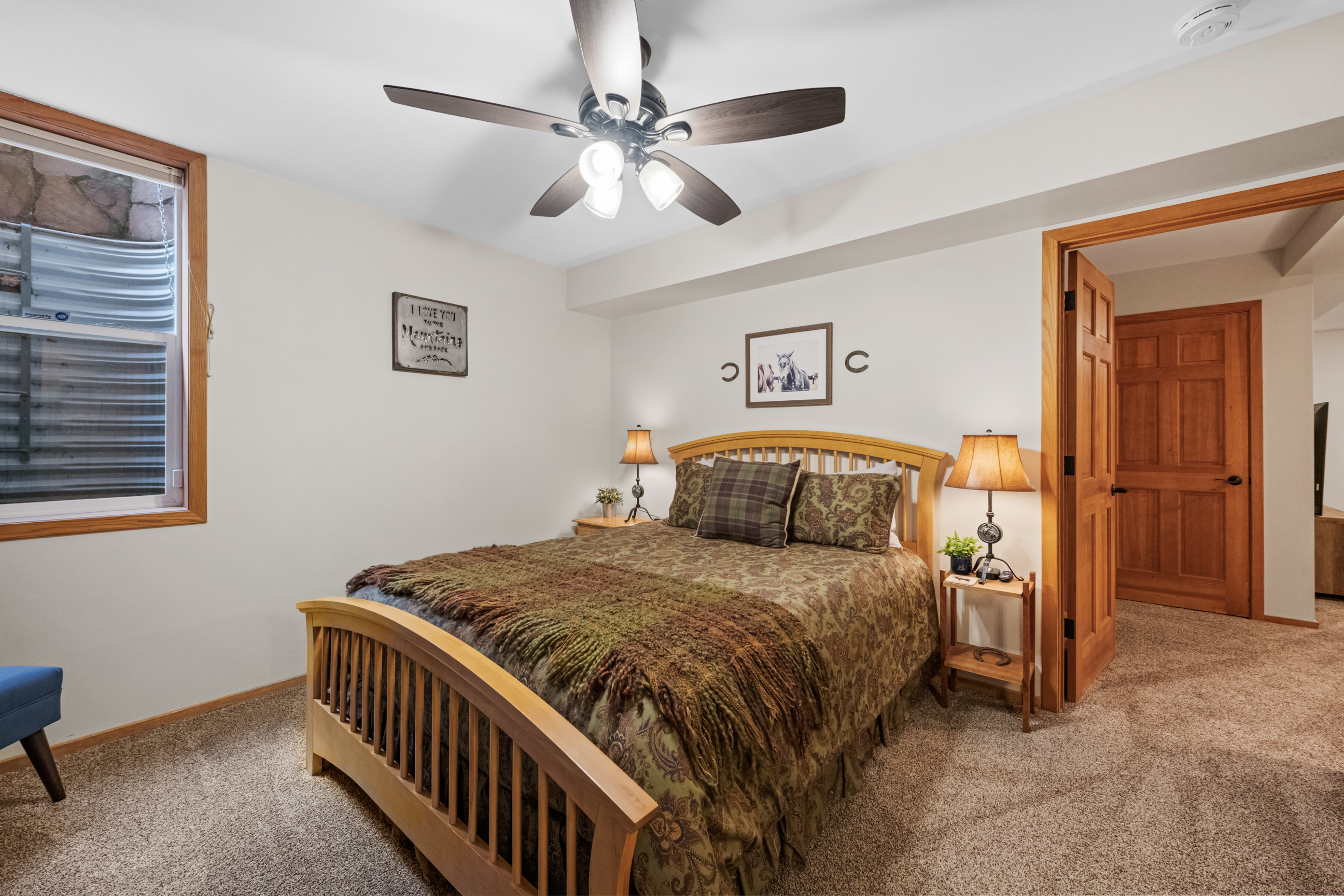 Located in the basement, this bedroom is furnished with a queen bed and has its own private bathroom.