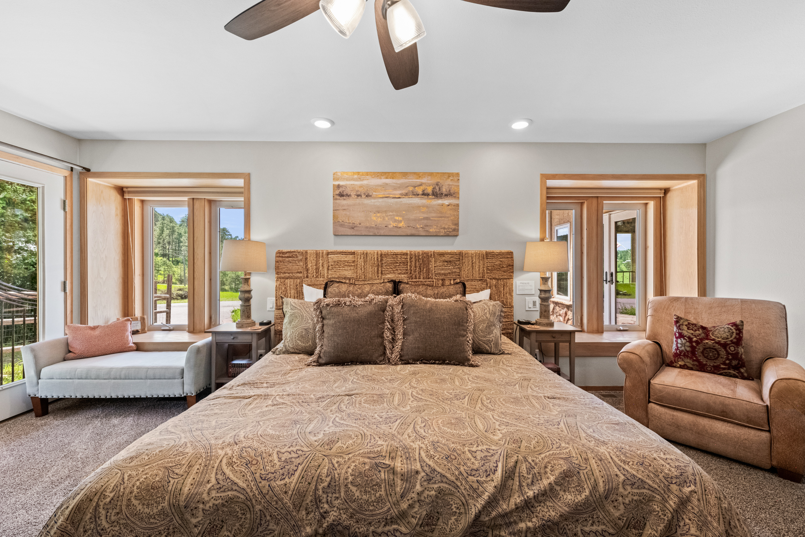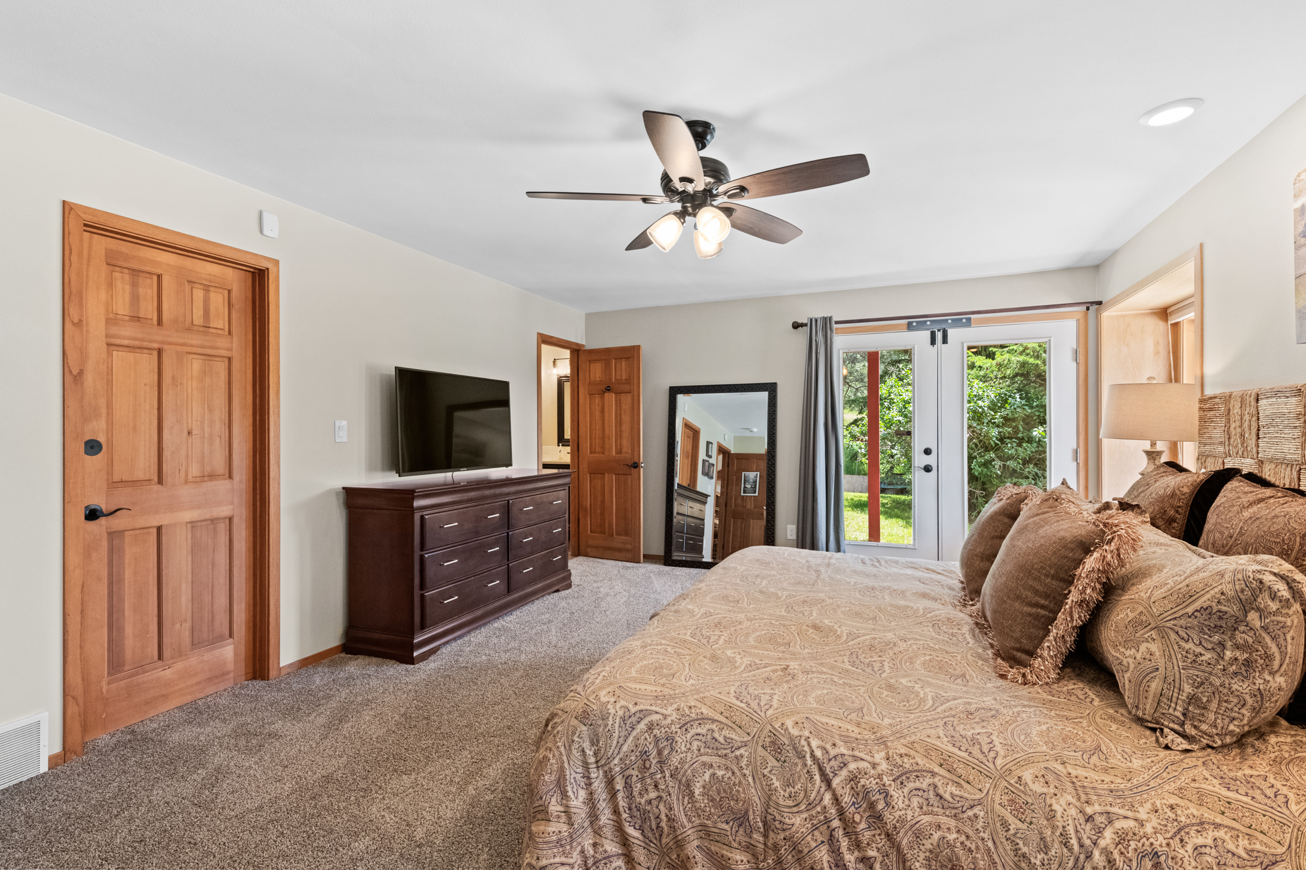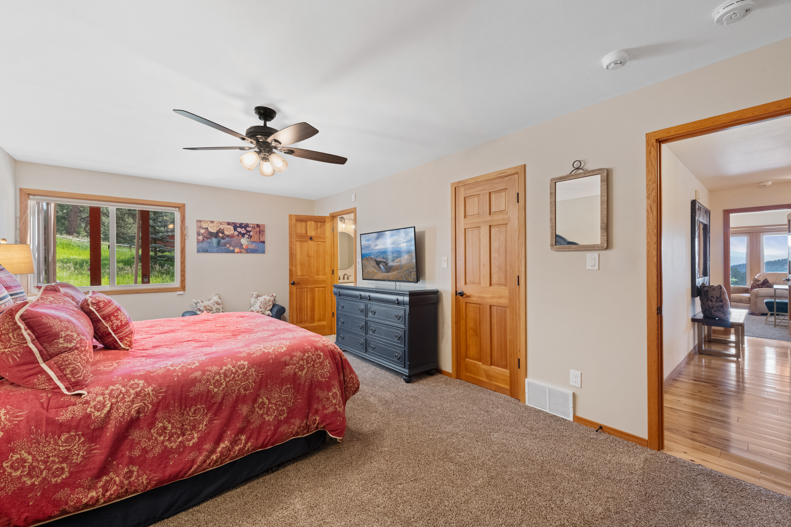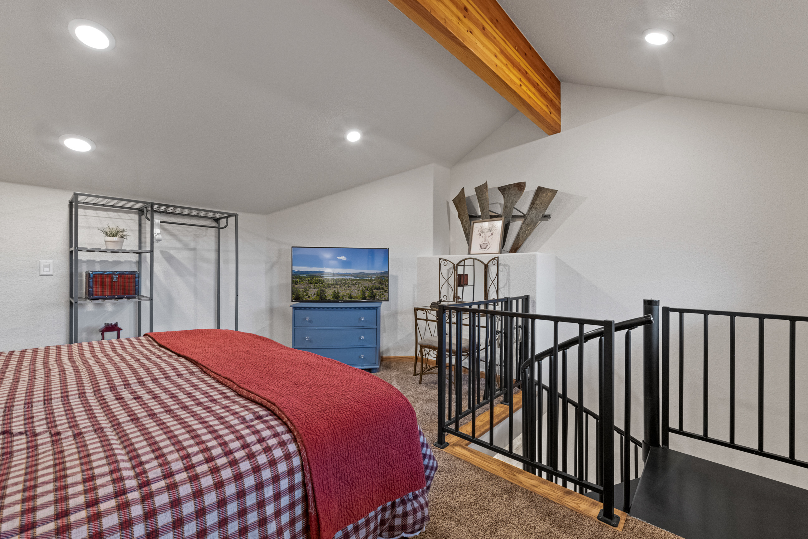 Located in the basement, this bedroom is furnished with a queen bed and has its own private bathroom.